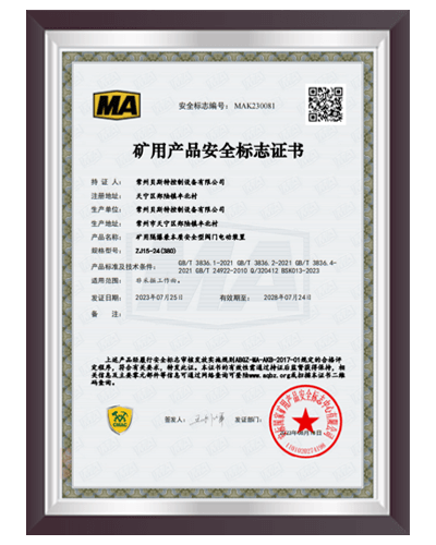 于2000年通過 ISO9001:2000質量體系認證,建立了完善的產品質量控制體系;2006 年6月取得全國工業產品生產許可證;2008年9月取得礦用產品安全標志證書;2012年取得8項礦用產品的專利證書。